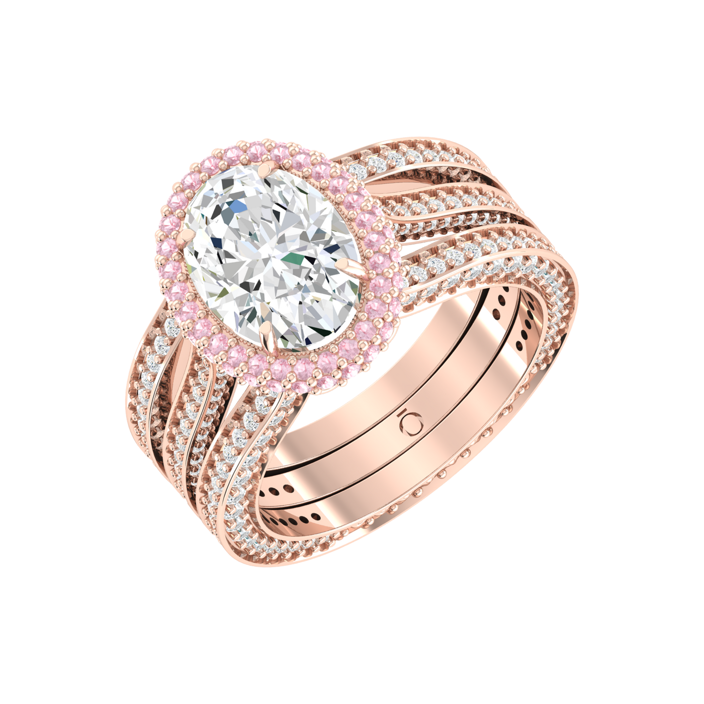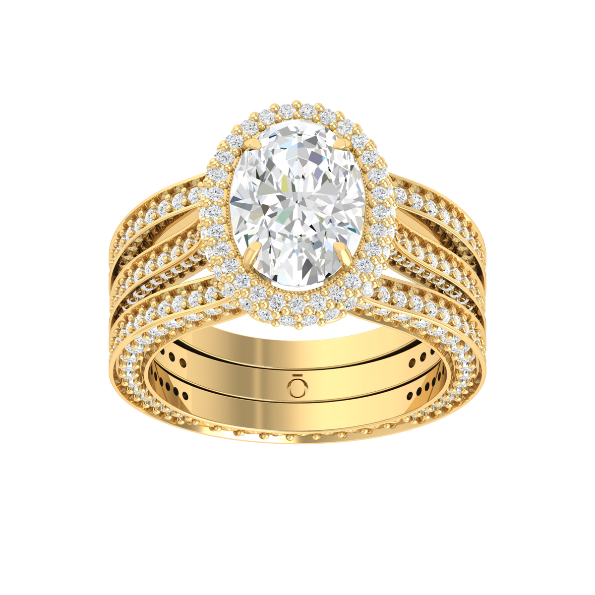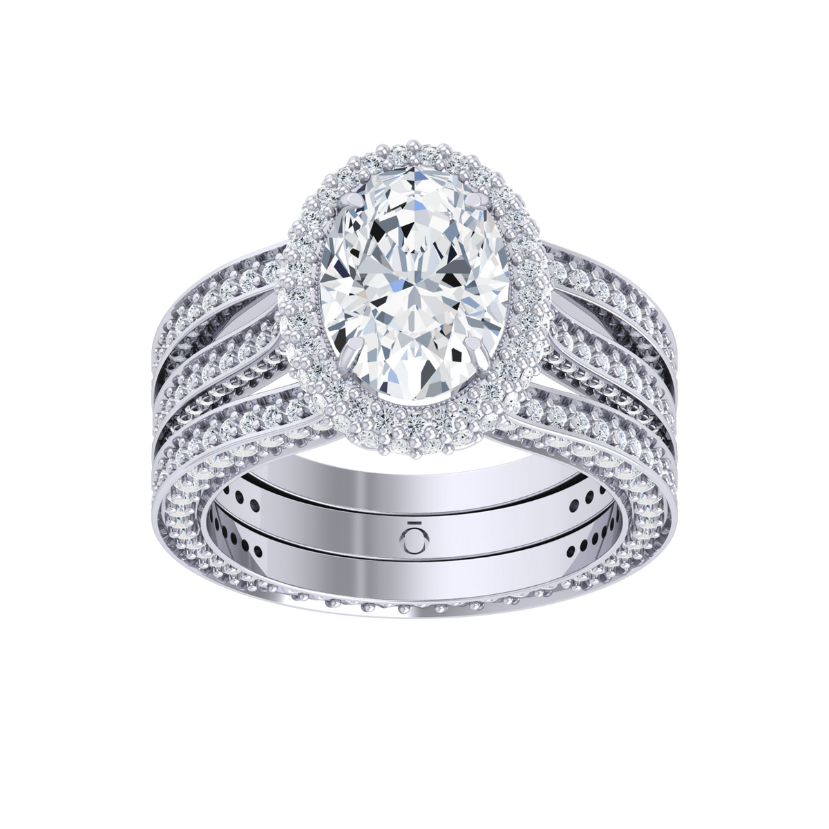 A round solitaire with three shimmering bands.