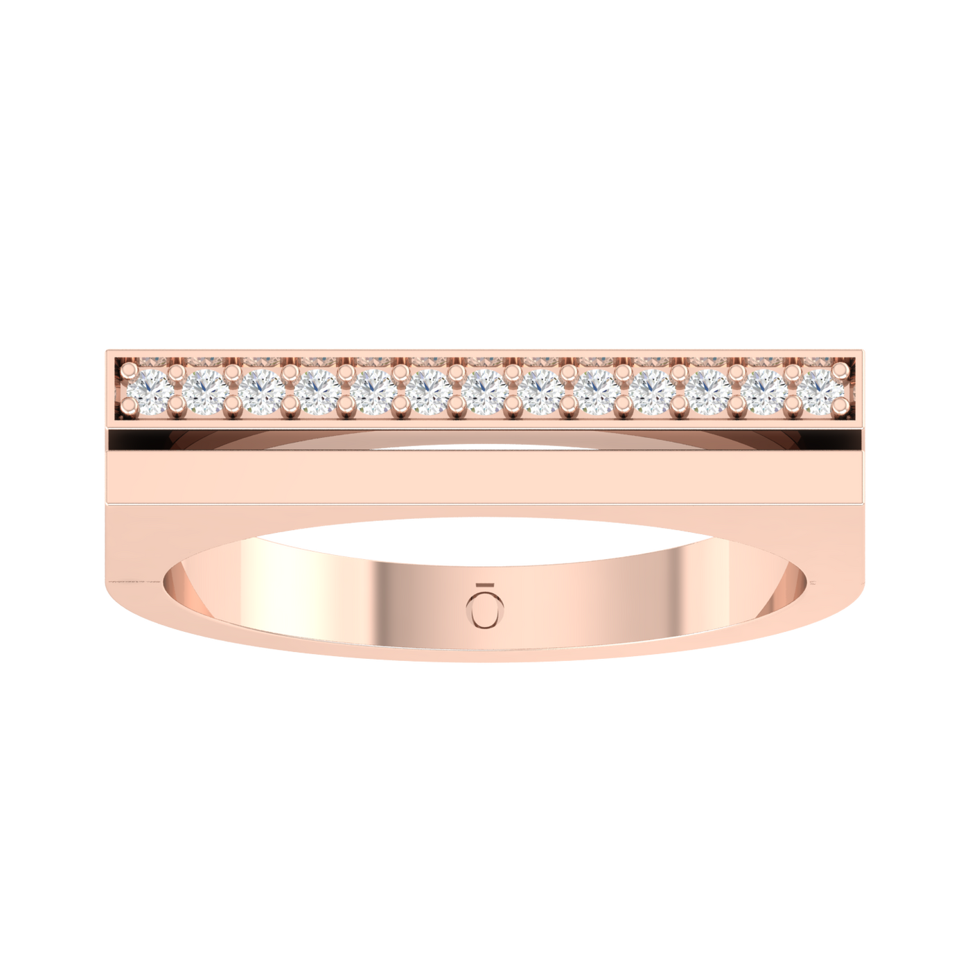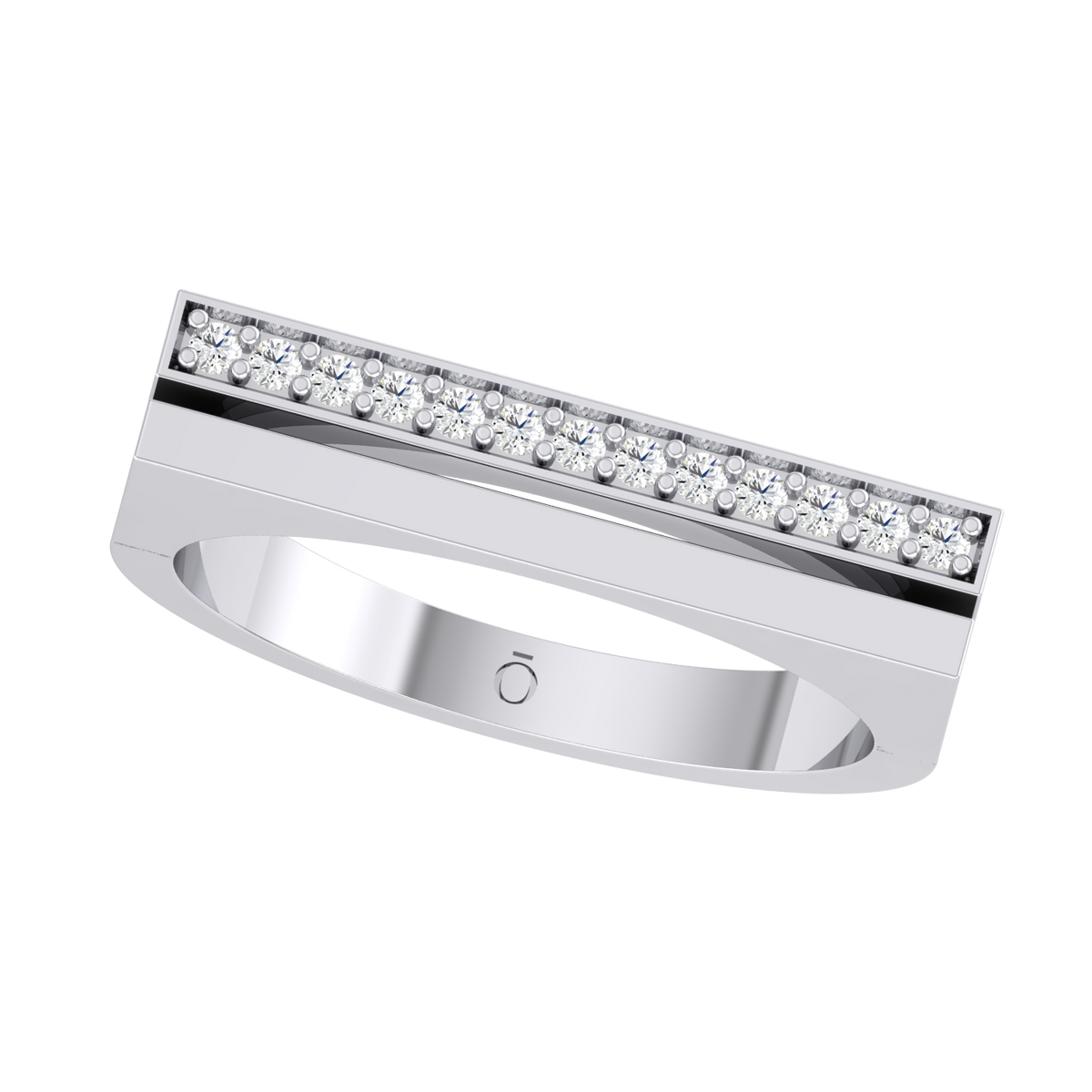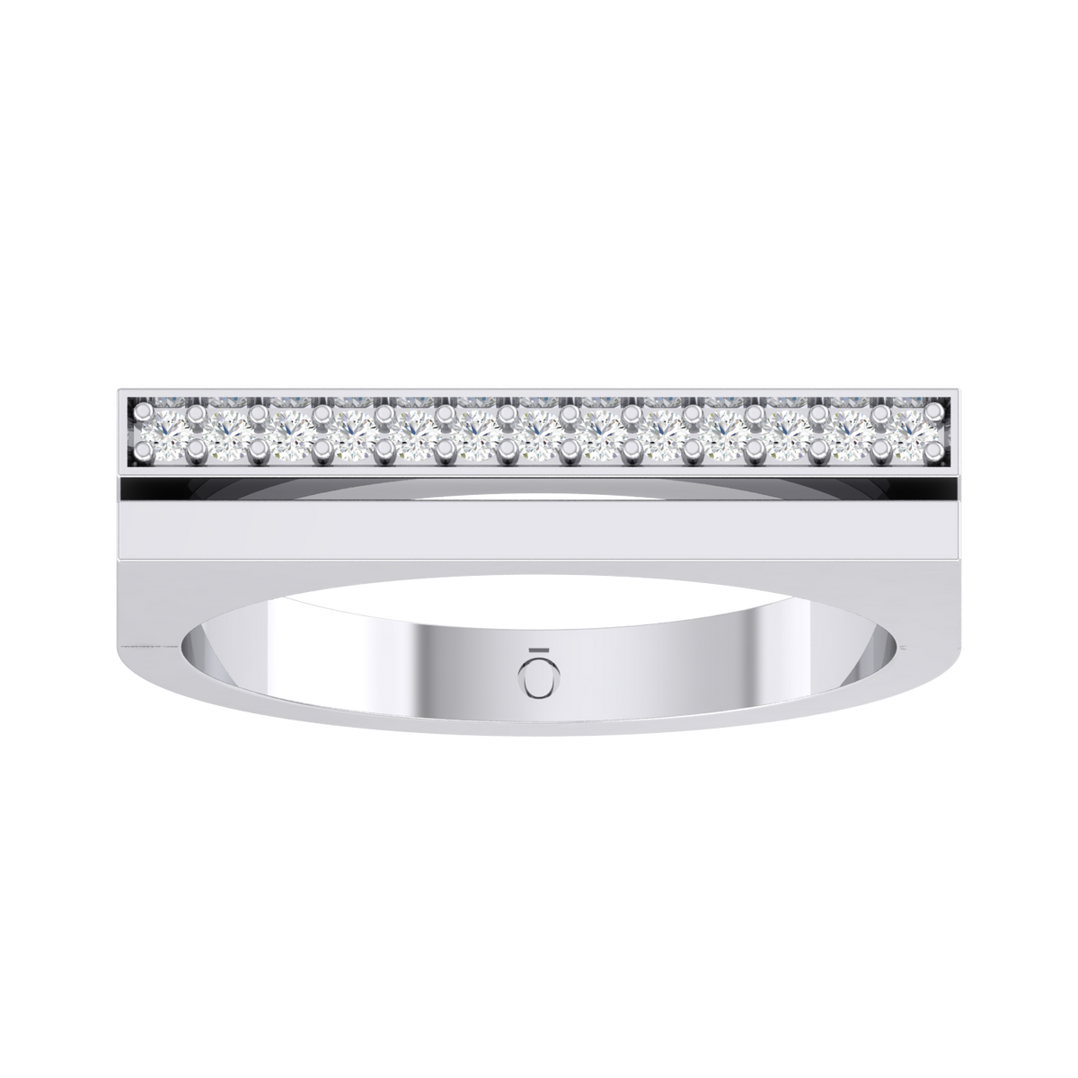 "A single line of diamonds set in this ring delivers a clean, stunning statement of elegance and radiant luxury"